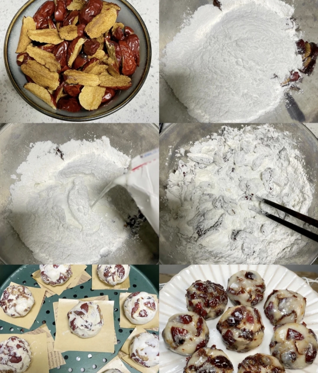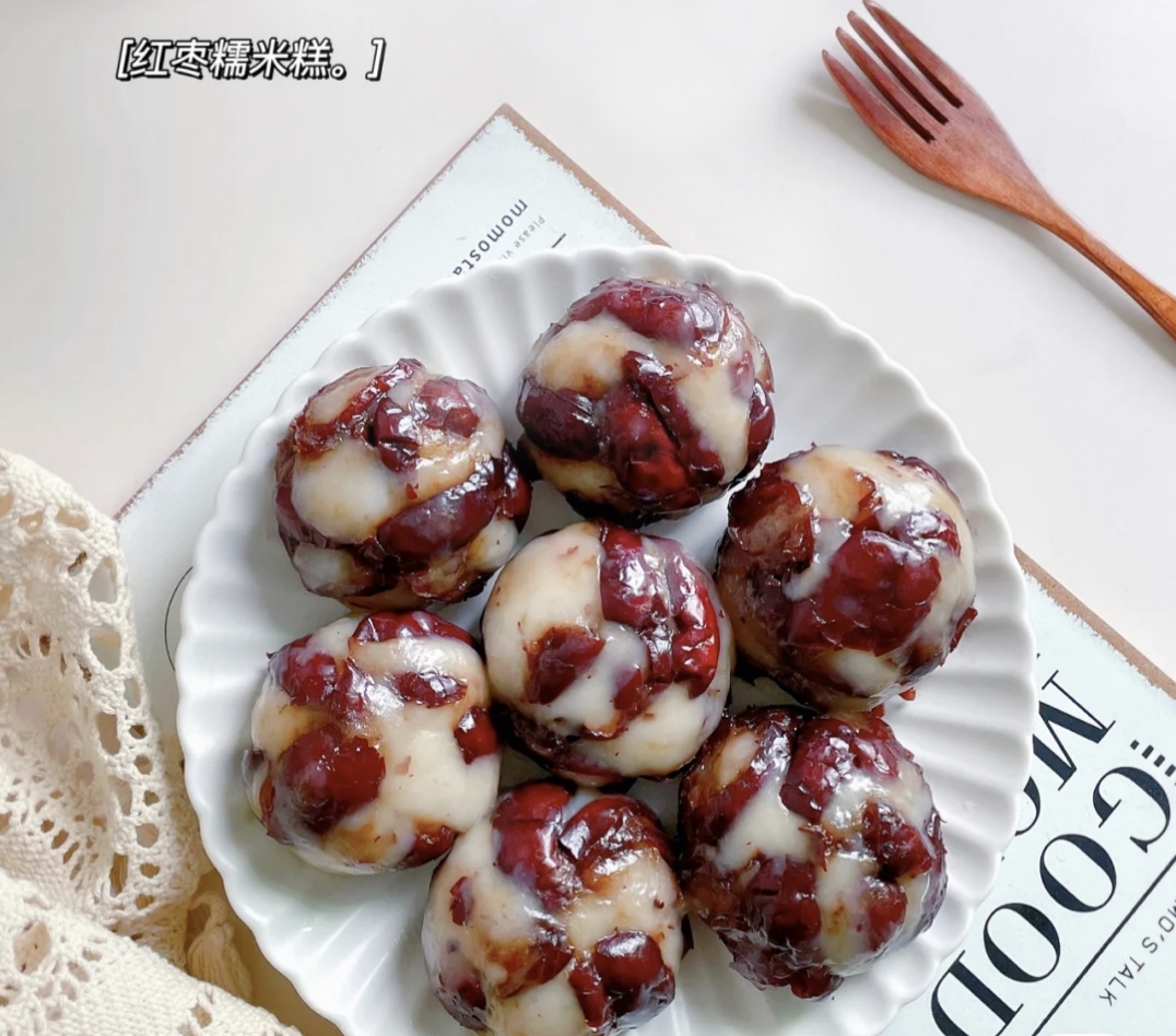将糯米糕揉成球状约80克一个,按压成小圆饼摆入蒸屉,锅内水开,蒸20分钟左右即可。