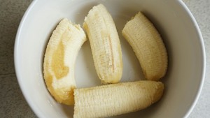 1.将两根熟香蕉碾碎成泥