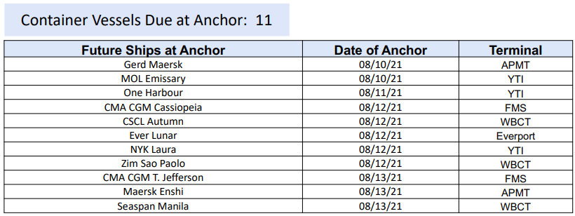 据洛杉矶港signal平台的最近数据,目前在南加州锚地苦苦等待的集装箱船达到19艘,在港外等待的船舶达11艘,平均等待靠泊时间为5.8天。