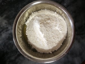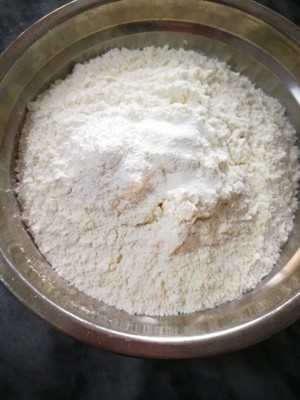 步骤6. 把低筋面粉跟泡打粉搅拌均匀。