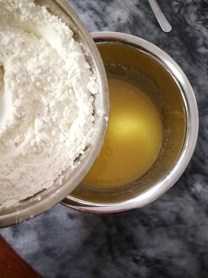 步骤7. 把粉倒进乳化好的油里。