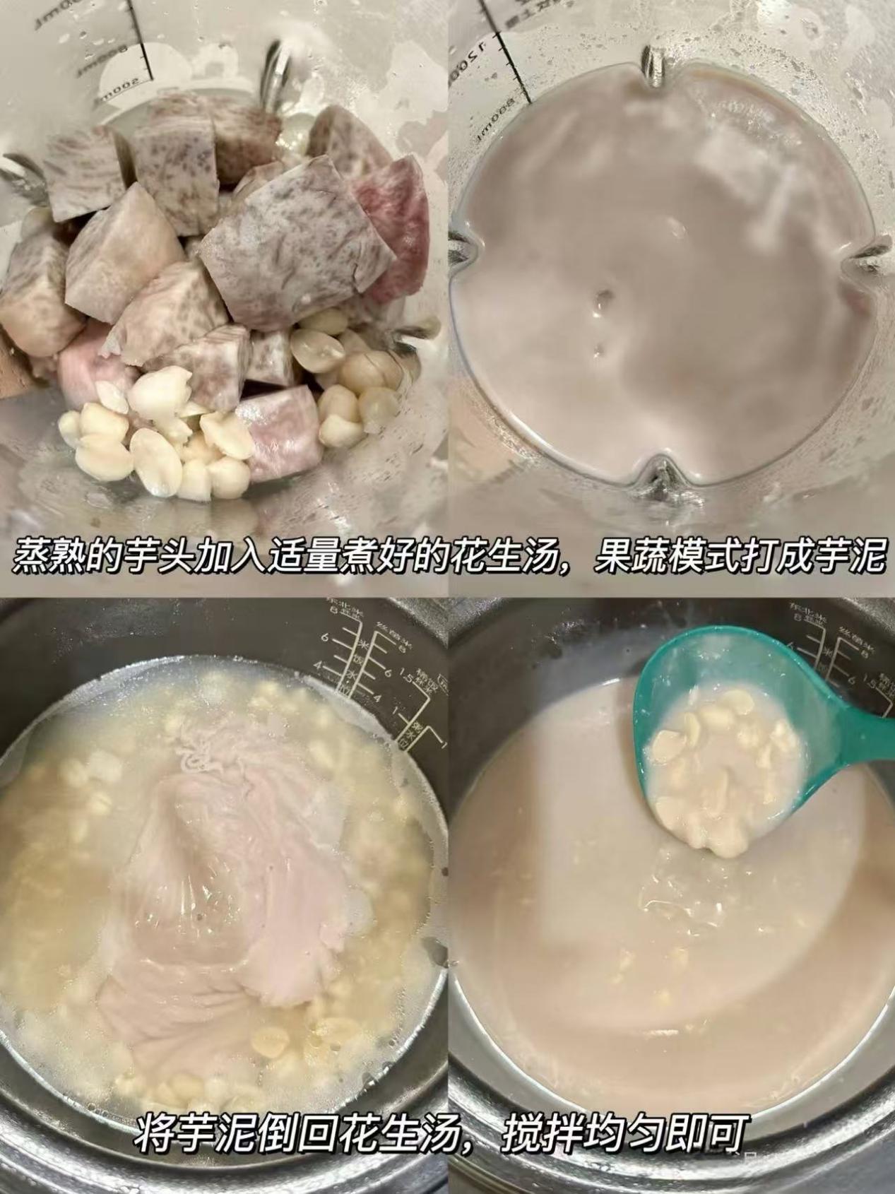 ️4.蒸熟的芋头加适量煮好花生汤用破壁机打成芋泥