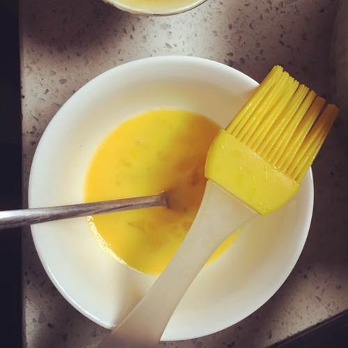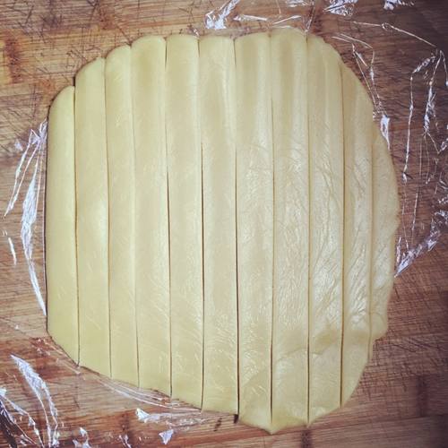 6.放入模具,去掉多余部分,底部用牙签扎眼儿。