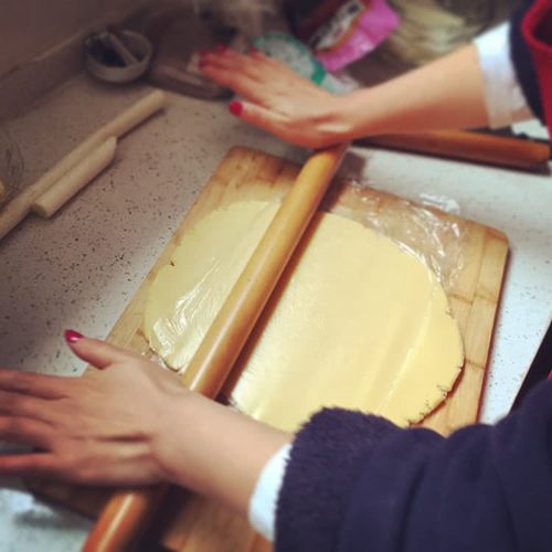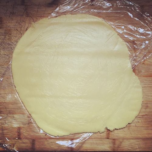 5.制作苹果馅儿的同时,拿出面团擀成皮儿,大概3mm左右。