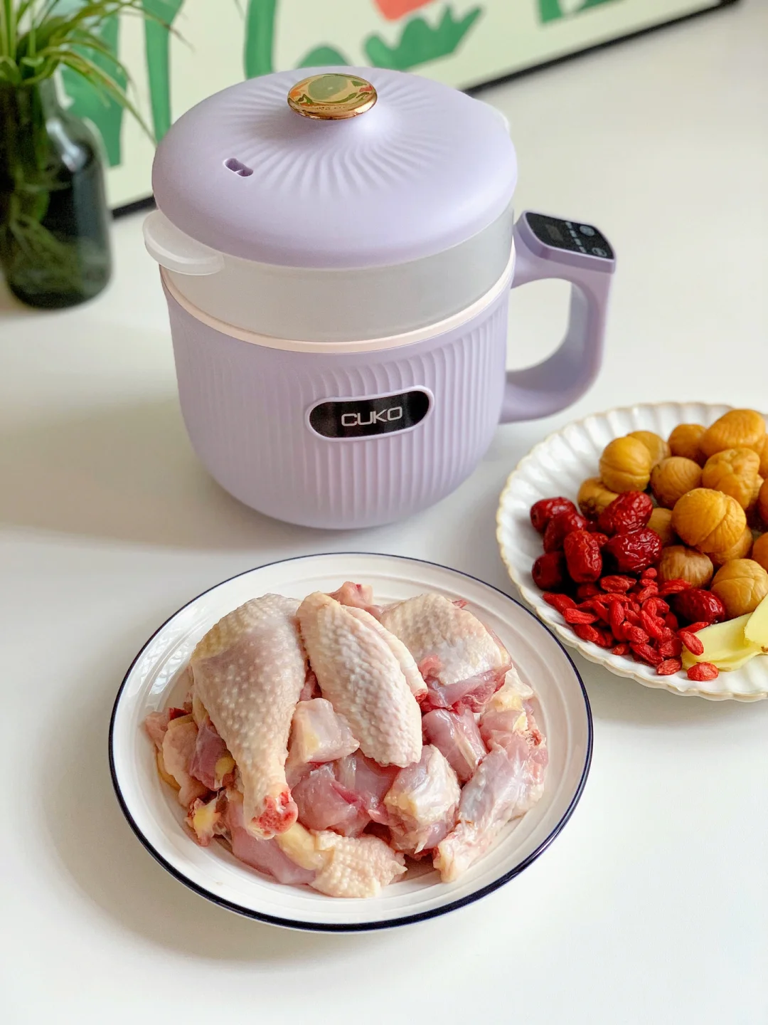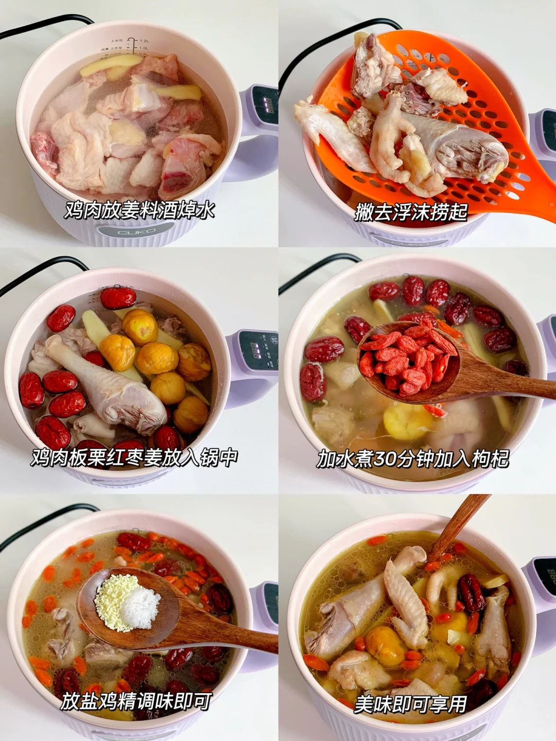 倒入板栗再炖10分钟,起锅加枸杞,1勺盐鸡精调味。
