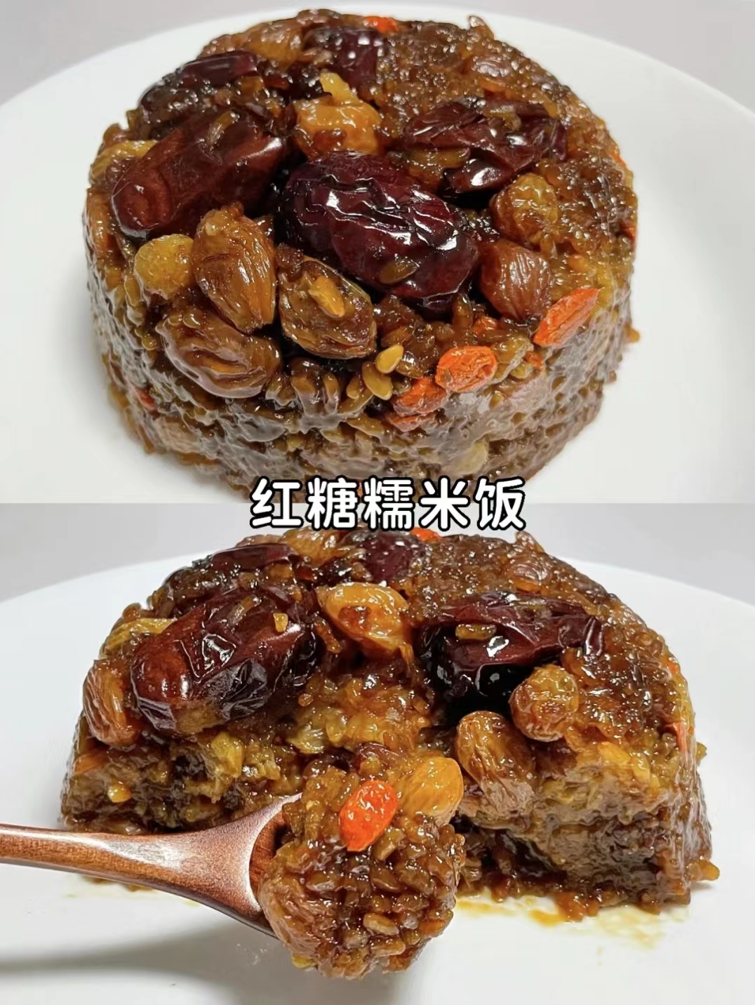 红糖糯米饭味甜可口,特殊时期的女生们可以在家做点吃,食材简单还能起到很好的补气血作用呢。