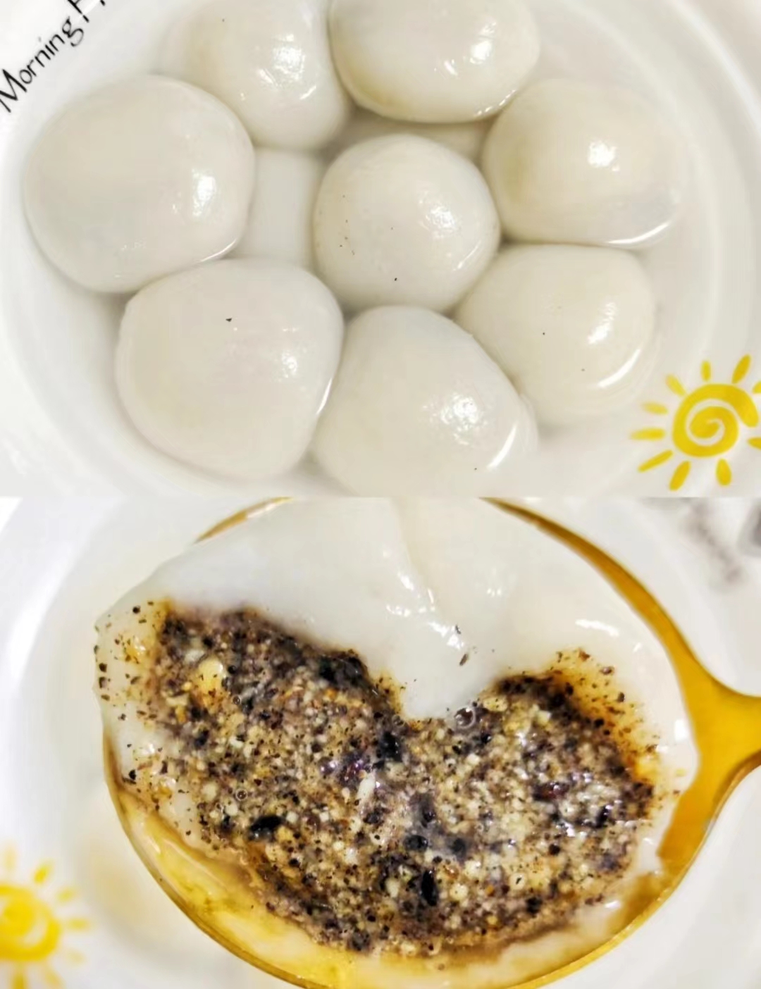 煮好的花生黑芝麻汤圆软糯香甜,咬上一口全都是花生的香味,简直太满足了!