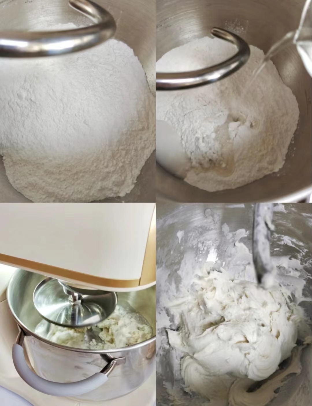 2.糯米粉倒入厨师机揉面桶,倒入开水,选择2档搅拌至无干粉,然后调至3档搅拌成面团。