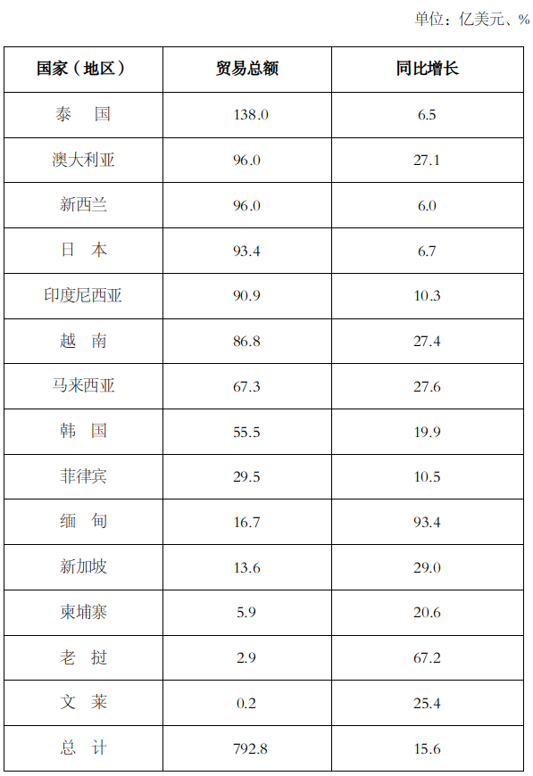 我国与RCEP其他各成员国农产品贸易均增长