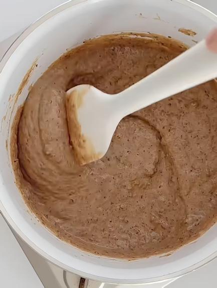 2.将蛋黄、白砂糖、牛奶、坚果酱倒入锅中并搅拌至一起,倒入打发好的淡奶油中继续搅拌。