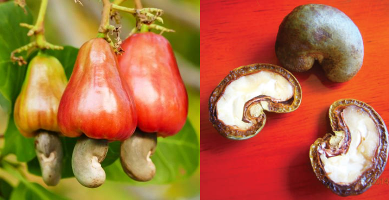 腰果大家都知道,但你们知道腰果苹果吗?下面的图片展示了野生腰果长在肉质梨形“苹果”果实外壳下的样子。其外表鲜艳,作用是为了吸引动物采摘食用以保护下面的肾形种子。腰果苹果是腰果的可食用部分,柔软多汁,营养丰富,富含多种维生素B和维生素C。在腰果的产地,腰果苹果被当作水果来出售。