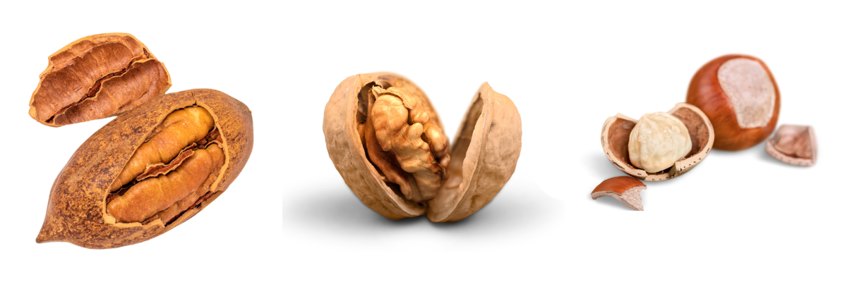 从植物学角度讲,坚果是一种干果,有一颗种子、一个硬壳和一个保护性的外皮。像榛子、碧根果、核桃和栗子都是这样生长的。