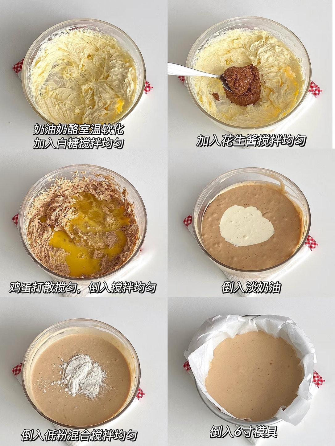 4、将所有混合好的材料倒入6寸模具,放入预热烤箱,上下烘烤210度20分钟左右(根据自家烤箱脾气),烤好后放凉,再放入冰箱冷藏2小时以上。