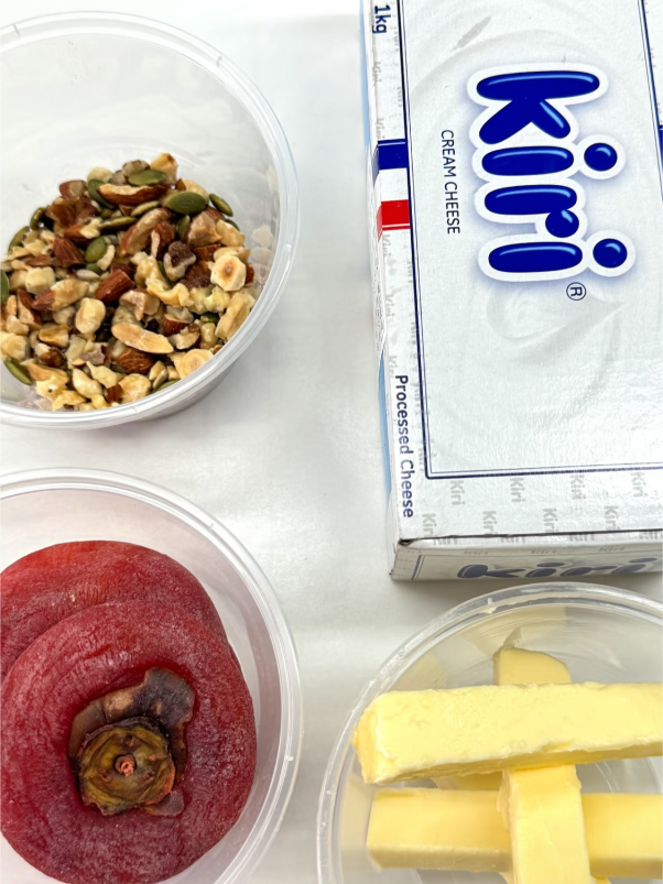 冷冻过后的口感好,不要放到常温再吃(否则会很腻)。吃起来是黄油的奶香配上柿饼的香甜,再伴随着坚果的咀嚼感,很适合做下午茶,搭配一杯红茶更佳。最后,黄油切记要选择发酵黄油,不要选择普通黄油!!
