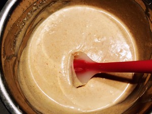 步骤3:把牛奶花生酱倒进打发好的淡奶油,充分搅拌均匀,着急就用打蛋器打几下。