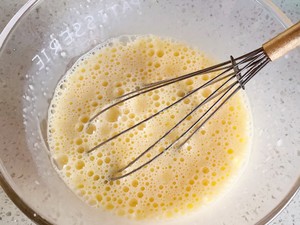1.将白糖加入鸡蛋液中搅拌均匀。