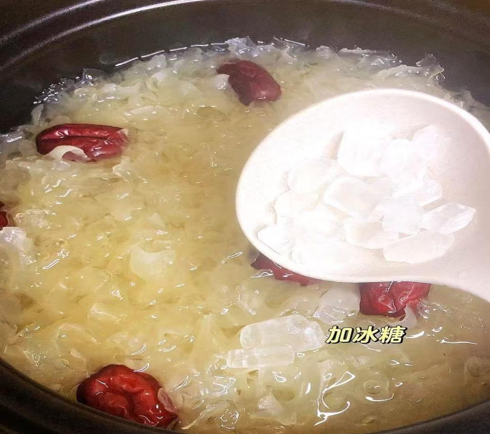 4. 半小时后开始添加冰糖。(甜度根据自己口味)搅拌几分钟。
