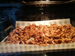 步骤11.烤好,趁热翻动,也可冷却后再用手掰开粘连一起的果仁。