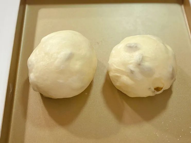 5.分成两份并盖上保鲜膜醒15分钟。