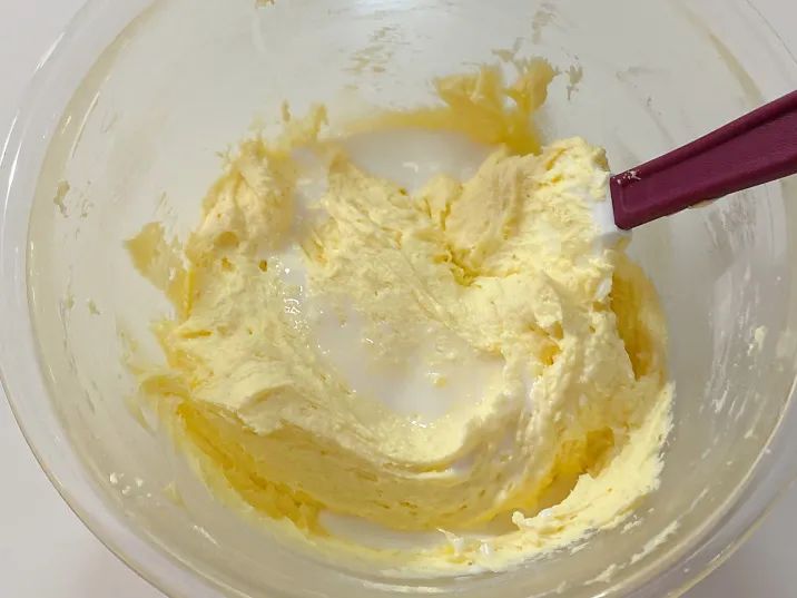 5.筛入一半粉类,拌匀。