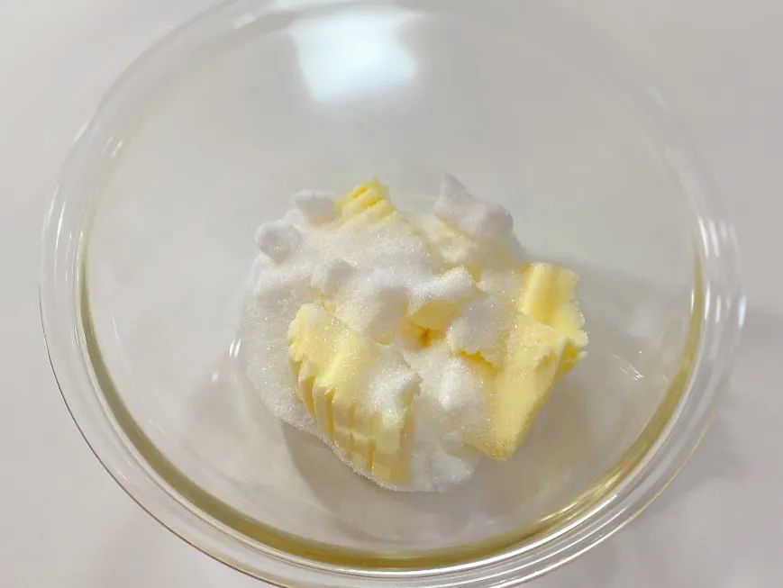 1.黄油室温软化,加入细砂糖。