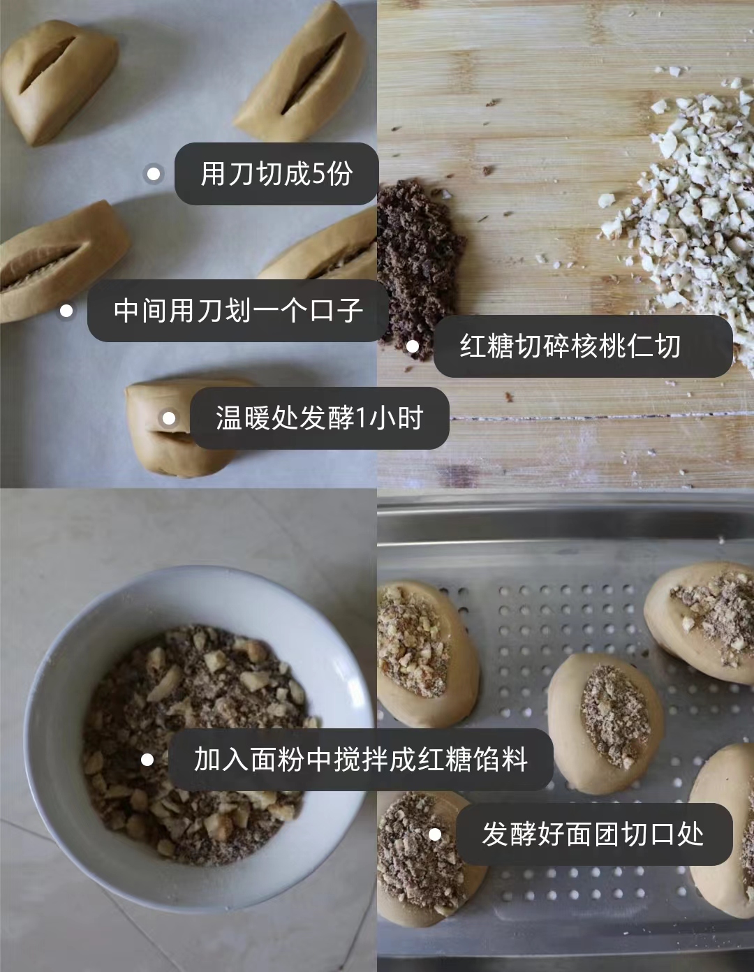 北方人喜欢吃面食,如果馒头吃腻了可以换个做法。红糖和核桃是绝配,红糖甘甜,核桃果香,用它们来做馒头,松软香甜。